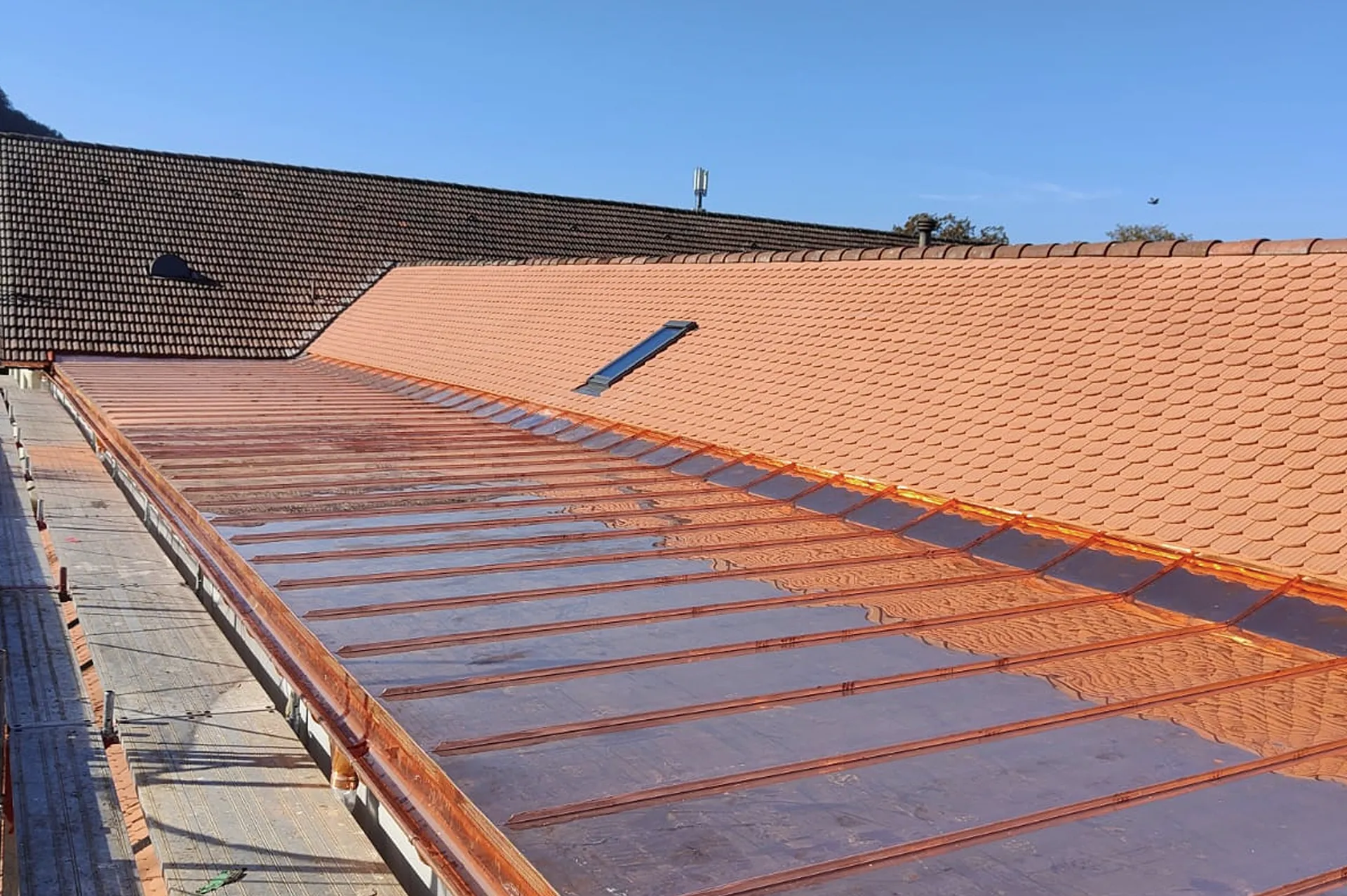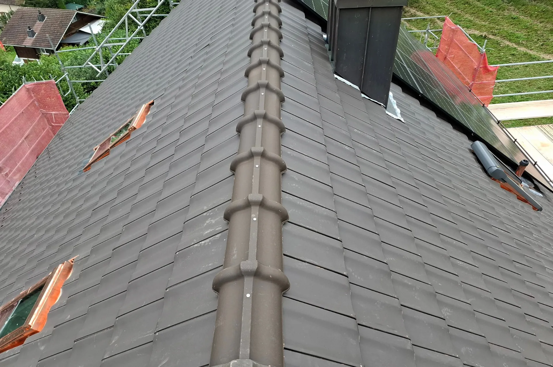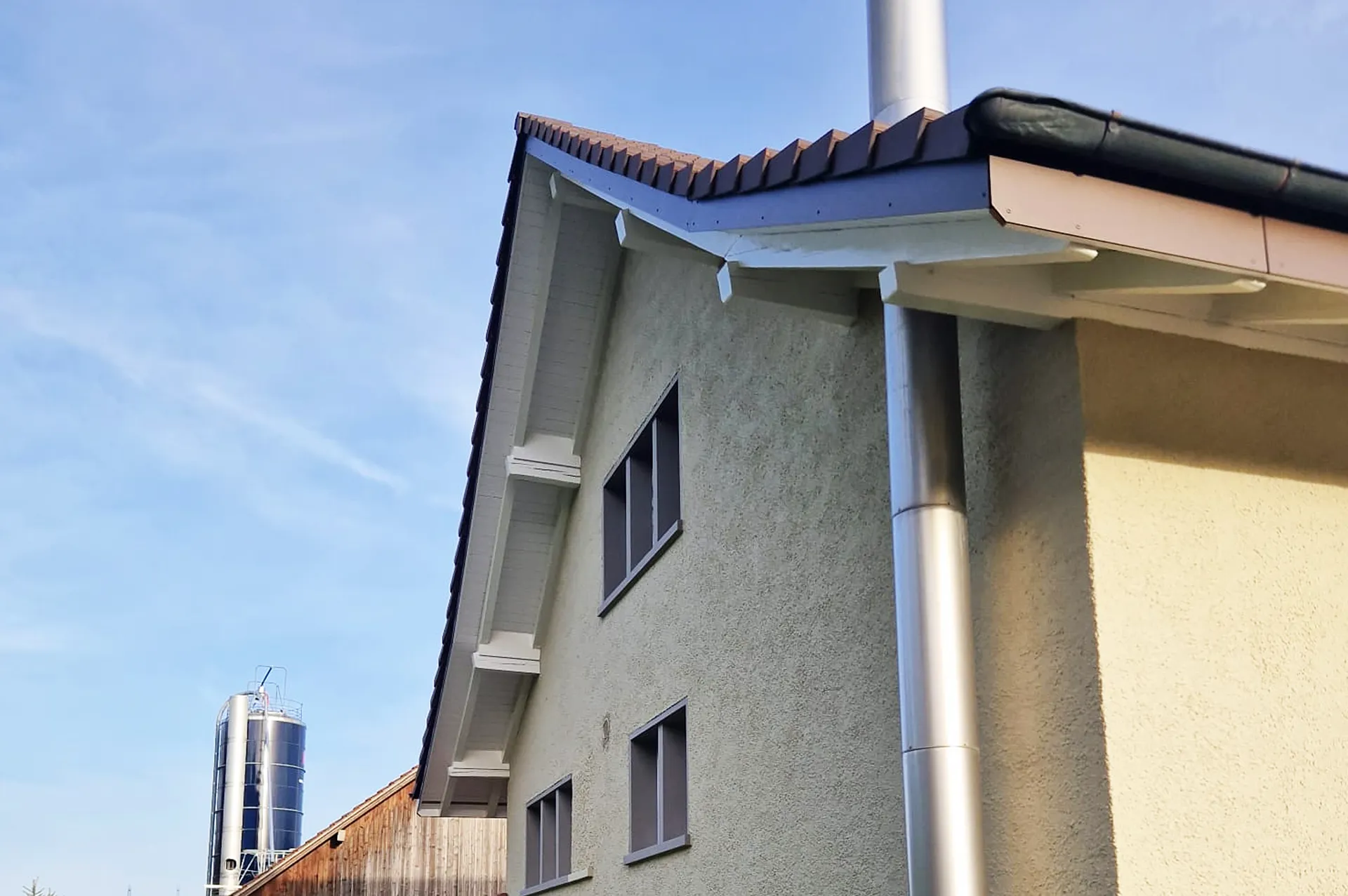 Kleinere Spenglerarbeiten (z. B. Abschlüsse und Dachrinnen) führen wir selbst durch. Bei grösseren Projekten arbeiten wir mit einem regionalen Bauspengler zusammen.